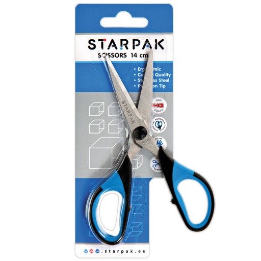 Nożyczki z doskonałym ostrzem z nierdzewnej stali najwyższej jakości. Ergonomiczna, bardzo wygodna gumowana rączka zapewnia precyzję i optymalizuje siłę używaną do cięcia. Chętnie kupowane zarówno do biura, jak i domu. Pakowane w atrakcyjne blistry.