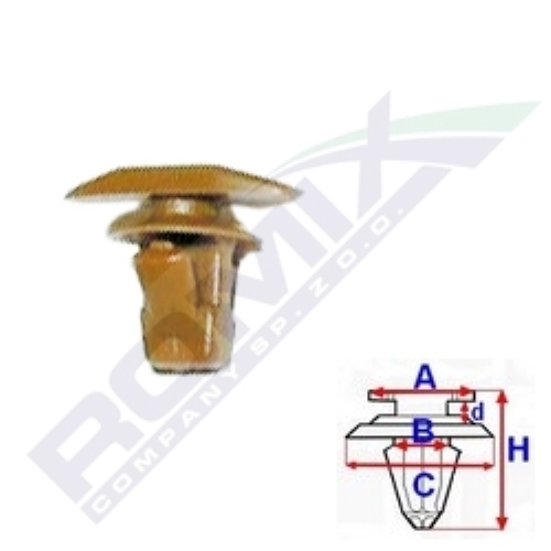 Wymiary: A 12,8x5 B 3,5 C 6,7 d 1,5 H 10, w śr.otworu 5
