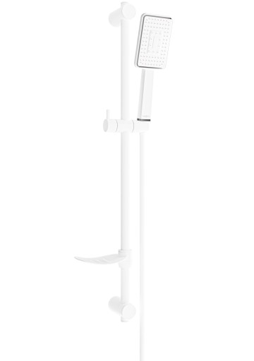 Mexen DF54 zestaw prysznicowy z drążkiem, słuchawką, wężem oraz mydelniczką, biały