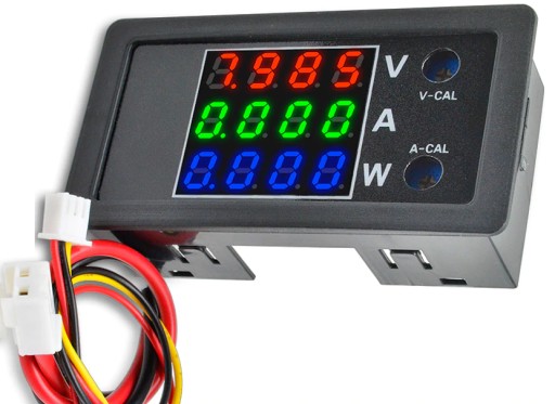 Uniwersalny moduł woltomierza i amperomierza i watomierza dla napięcia i prądu stałego. Miernik zasilany jest napięciem z przedziału 7-12VDC natomiast zakres pomiaru napięcia to 0-100VDC.
