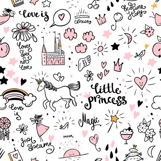 РОЗОВЫЕ ОБОИ, ДЕТСКАЯ ПРИНЦЕССА, НАДПИСИ ЕДИНОРОГА