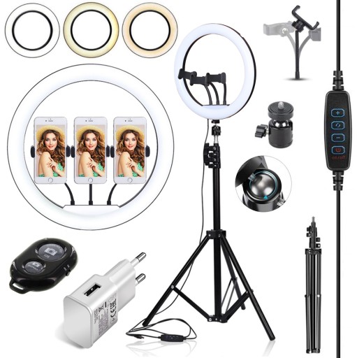 - Lampa pierścieniowa LED 100W emitująca 3 odcienie światła