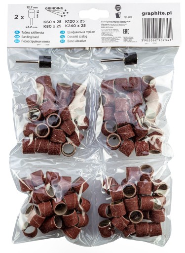 Taśma szlifierska 12.7 mm, K60, K80, K120, K240, zestaw 100 szt, trzpień 3.2 mm, 2 szt., GRAPHITE 55H077