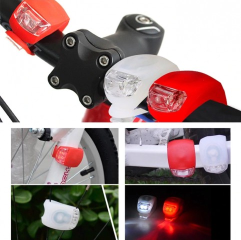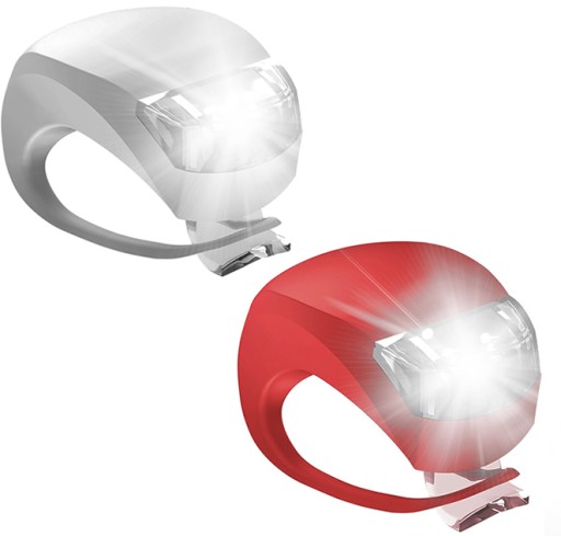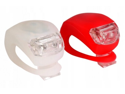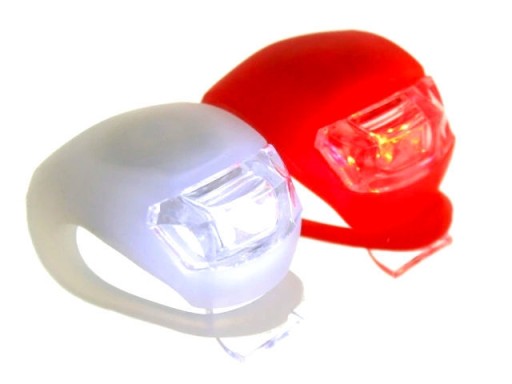 - 2 silikonowe lampki rowerowe wyposażone w po dwie jasne diody led( białe-przód i czerwone-tył )