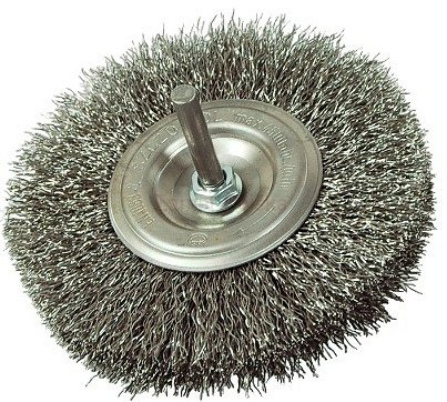 Szczotka techniczna tarczowa z trzpieniem wykonana z falistego drutu STALOWEGO. Szczotka do zamontowania na wiertarkę. Produkt bardzo trwały i dobrze wykonany.