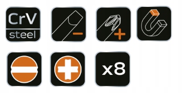 - Zestaw wkrętaków NEO zawiera 8 wkrętaków: płaskie i krzyżowe.