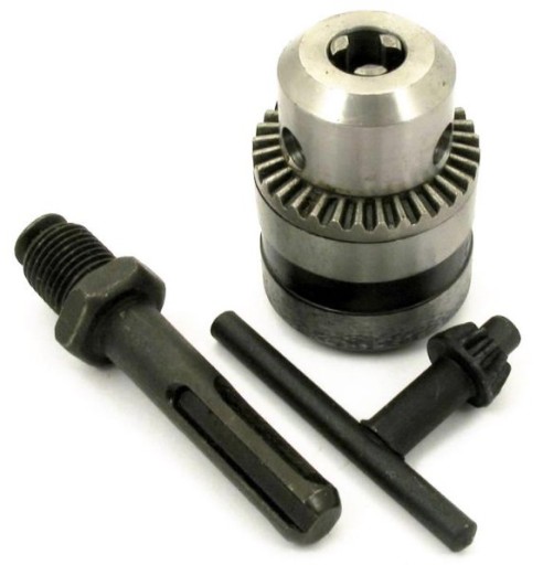Głowica do wiertarki i adapter umożliwiający korzystanie ze "zwykłych" wierteł (np. do metalu) w wiertarce SDS.