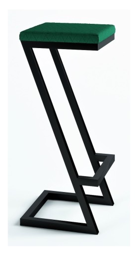 Nowoczesny hoker metalowy z tapicerowanym siedziskiem w odcieniu butelkowej zieleni.