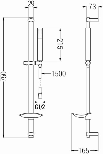 - Odległość od ściany: 165 mm