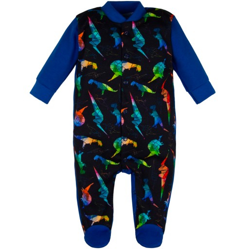 - z przodu pajacyka są efektowne rysunki dinozaurów w stylu origami