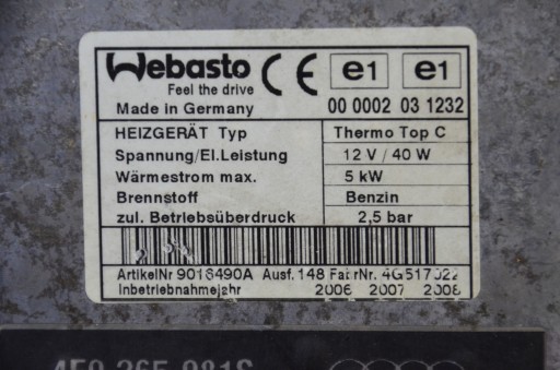 AUDI VW WEBASTO 4E0265081S POMPKA WODY