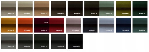 - Riviera Miękka i trwała tkanina welurowa o najwyższej klasie ścieralności.