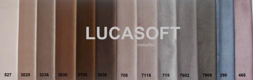 - Lucasoft ( bardzo przyjemna w dotyku ,aksamitna , welurowa ,wytrzymała ,typu Cleanaboo – łatwa w utrzymaniu w czystości)