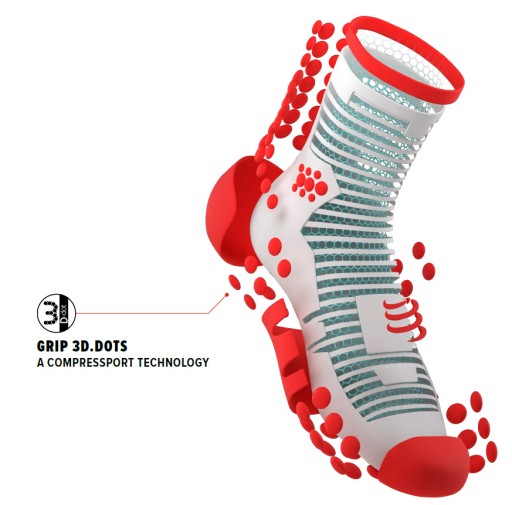 ProRacing Socks V3 to najnowsza generacja technicznych skarpet do biegania. Bardzo lekkie, ze wzmocnionym wsparciem, Compressport® ProRacing Sock V3 wzmacniają krok i poprawiają mikro cyrkulację stóp. Szeroka część na palcach zapewnia dodatkową ochronę, wspomaganie podbicia stopy eliminuje uczucie palenia stóp, poduszeczki 3D.DOTS i użycie kompresyjnych włókien gwarantuje wygodę, stabilność i ucisk.