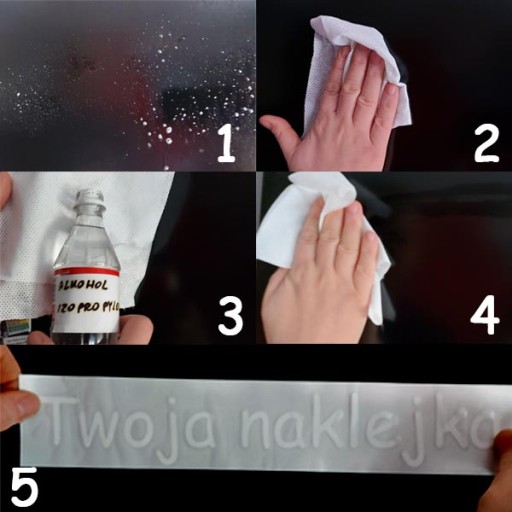 3. przed aplikacją naklejki nalezy odłuścić powierzchnię.