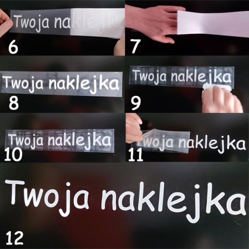 7. przyklejaj naklejkę powoli usuwając podkład papierowy.