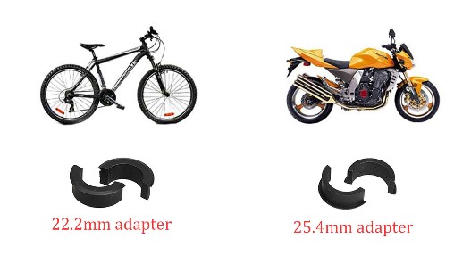 Uchwyt można zamontować do kierownicy lub ramy roweru.
