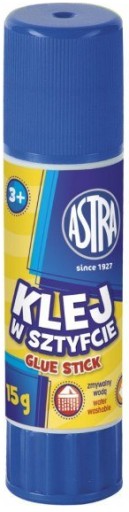 Klej w sztyfcie ASTRA nadaje się do papieru i cienkiej tektury. Nie zawiera rozpuszczalników.
