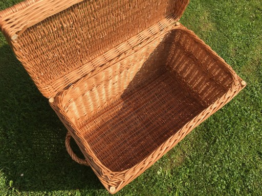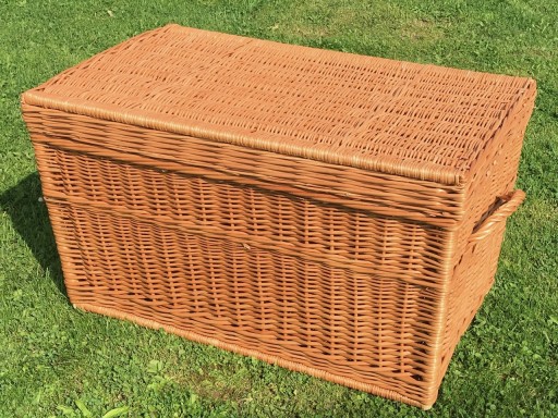Przedmiotem aukcji jest kufer wiklinowy zamykany.