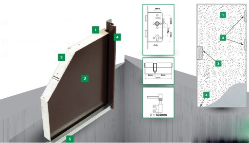 - Grubość: 40mm, skrzydło pokryte blachą o grubości 0,5mm
