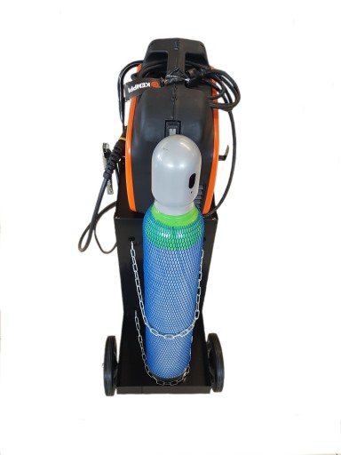 Wózek spawalniczy przeznaczony jest do transportu kompaktowych urządzeń spawalniczych MIG/TIG/MMA. Wózek posiada 3 półki oraz 4 koła (2 przednie skrętne). Z tyłu wózka znajduje się podest na butlę, którą można zabezpieczyć 2 łańcuchami. Po bokach zamontowane są 2 uchwyty na których można położyć uchwyty spawalnicze.