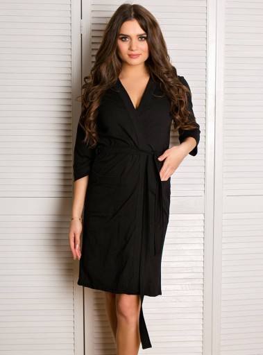 CZARNY BAWEŁNIANY SZLAFROK BASIC