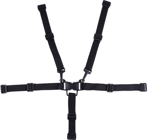 - Pasy, szelki pięciopunktowe w kolorze czarnym, wykonane z trwałych i sprawdzonych materiałów, łatwe w montażu bez użycia narzędzi.