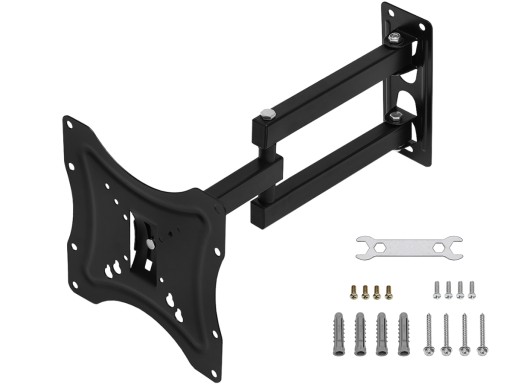 - SPECYFIKACJA – kolor: czarny; regulacja obrotów (liczba stopni): 180°; regulacja nachylenia (o ile stopni): +15° do -15°; regulacja odległości od ściany (zakres): 40-385 mm; przeznaczenie (cale): 14 do 42″; maksymalne obciążenie (kg): 35 kg; wymiary (dł/szer/wys): 39/22/22cm; waga: 1,2kg; waga z opakowaniem: 1,5kg.
