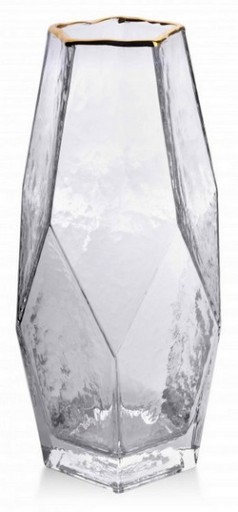 Szklany wazon z linii SERENTINE GREY z bezbarwnego szkła wykończonym złotym rantem wyróżnia się nowoczesnym kształtem co nadaje mu oryginalnego wyglądu.