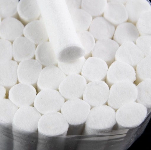 Jednorazowe wałeczki wykonane z waty celulozowej.