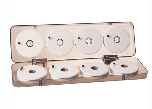 Organizer z tworzywa sztucznego ze szpulami z tworzywa EVA do nawijania przyponów. Organizer z dopasowaną do liczby szpul ilością igieł do mocowania przyponów.