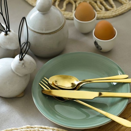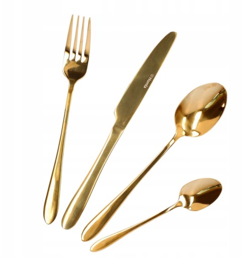 Zestaw złotych sztućców wykonanych z wysokiej jakości stali nierdzewnej to odzwierciedlenie nowoczesnego designu.