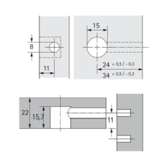 ZŁĄCZE MIMOŚRODOWE / MIMOŚRÓD RASTEX 15 DO GRUBOŚCI PŁYTY 22 MM, BEZ KOŁNIERZA