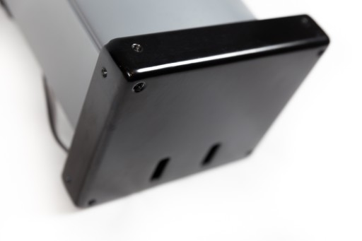- Sztywna, wytrzymała, niezawodna konstrukcja, z elementami teleskopowymi w kolorze czarnym (RAL 9004) oraz elementami zewnętrznymi w kolorze “aluminium” (RAL 9006). Możliwość zakupienia siłownika w całości w kolorze czarnym.