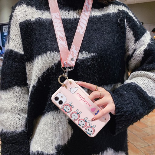 Etui z regulowanym silikonowym uchwytem i nadrukiew wraz z różową smyczką