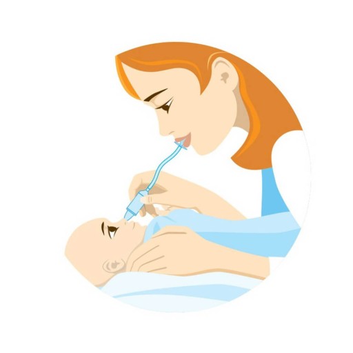 Połóż dziecko na pleckach na łóżku, przewijaku lub na własnych kolanach. Możesz delikatnie odchylić głowę dziecka do tyłu. Następnie delikatnie końcówkę aspiratora do nosa dziecka, a plastikowy ustnik do swoich ust. Wciągając powietrze przez ustnik wytworzy się ciśnienie, które zassie nagromadzoną w nosie wydzielinę do końcówki aspiratora. Reguluj siłę ssania według potrzeb. Rekomenduje się stopniowe zwiększanie siły ssania. Zakończ zasysać powietrze, kiedy obydwie przegrody nosowe zostaną oczyszczone. Po zabiegu wytrzyj dziecku nosek chusteczką higieniczną.