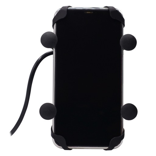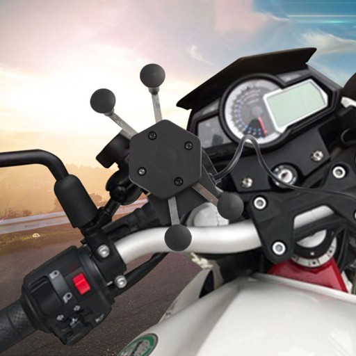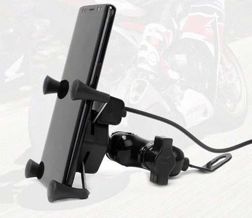Najważniejszą zaletą uchwytu jest wodoodporne gniazdo USB szybkiego ładowania o napięciu 2A, dzięki któremu już nigdy nie rozładuje Ci się telefon podczas wyprawy. Uchwyt posiada włącznik ON/OFF i kabel o długości ok. 150cm zakończony "oczkami" pod klemy akumulatora.