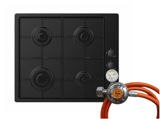Płyta gazowa CANDY CHW6LBB o szerokości 59.5 cm z czterema palnikami. Urządzenie posiada zapalarkę oraz zabezpieczenie przeciwwypływowe gazu.