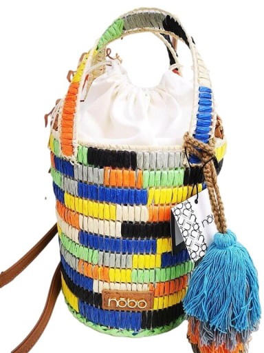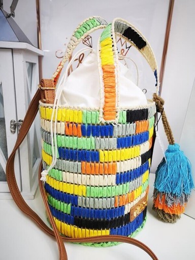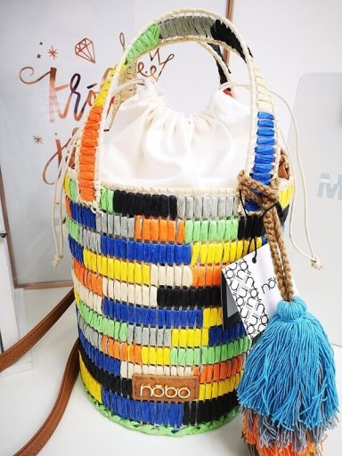 Torebka koszyk polskiej marki NOBO. Kolorowa plecionka torebki wyoknana jest z papieru.