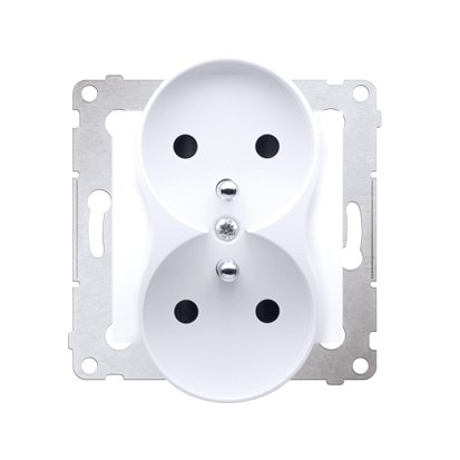 Gniazdo podwójne z bolcem i przesłonami torów prądowych (uziemieniem) marki KONTAKT SIMON serii 54. Przeznaczone do montażu podtynkowego za pomocą śrub lub zatrzasków (pazurków). Wykonany z wysokiej jakości tworzywa sztucznego w kolorze białym i wyposażony w metalowy wspornik. Kształt i kolor sprawi, że będzie pasował do tradycyjnie lub nowocześnie urządzonych pomieszczeń.Do gniazda należy dobrać odpowiednią ramkę maskującą na pozostałych naszych aukcjach. Uniwersalna konstrukcja umożliwia łatwy, szybki i bezpieczny montaż zarówno w ramce pojedynczej, jak i wielokrotnej.