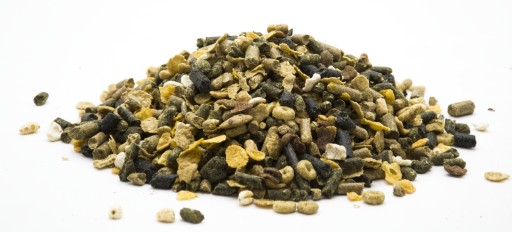Skład: płatki jęczmienne, pszenica, płatki kukurydziane, lucerna, kiełki słodowe, siemię lniane, makuch lniany, olej sojowy, poekstrakcyjna mączka sojowa, łuska sojowa, gluten, chleb świętojański, melasa, chlorek sodu