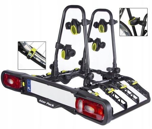 Inter Pack Quattro to solidna platforma z szybkim montażem i możliwością złożenia ramion. Bagażnik rowerowy posiada bezpieczną funkcję odchylania pozwalającej na nieograniczony dostęp do bagażnika auta z zamontowanymi rowerami. Platforma do przewozu rowerów posiada zamki zabezpieczające zarówno sam bagażnik jak i przewożone rowery.