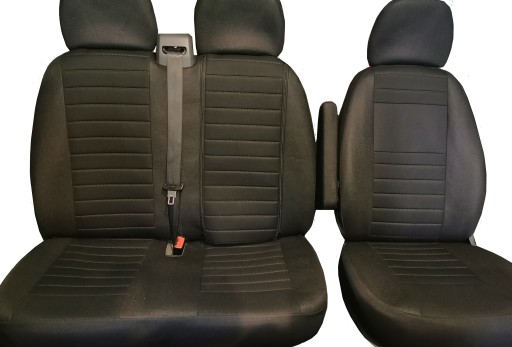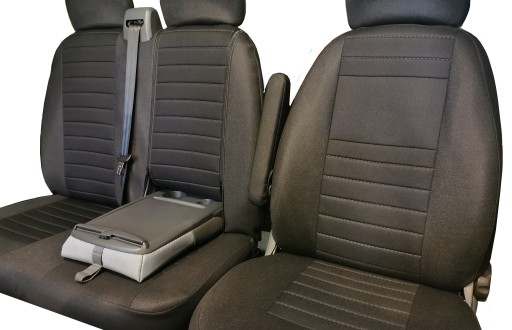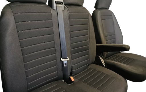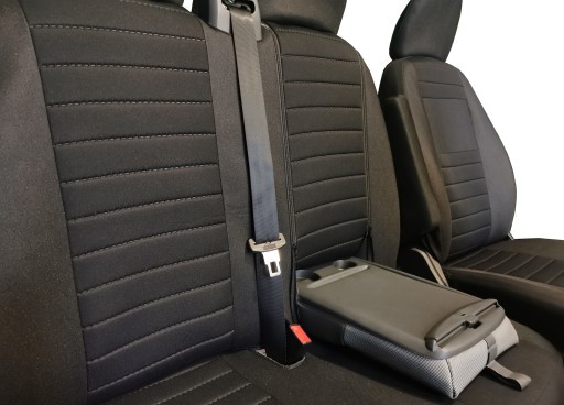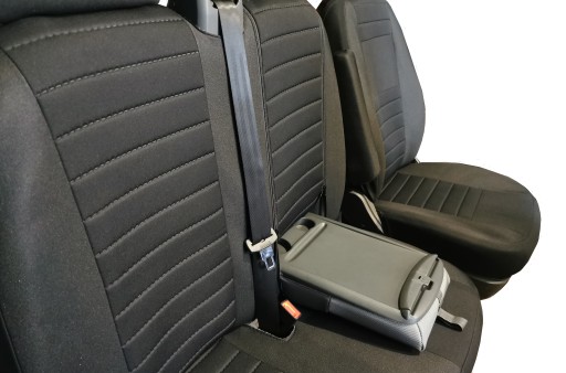 - Pokrowce zawierają wszystkie systemy zapewniające pełną funkcjonalność siedzeń - będzie można korzystać ze stolika w oparciu podwójnej ławki dzięki wszytym suwakom, posiadają wycięcie na podłokietnik kierowcy- prawa ręka, a także wycięcia na pasy.