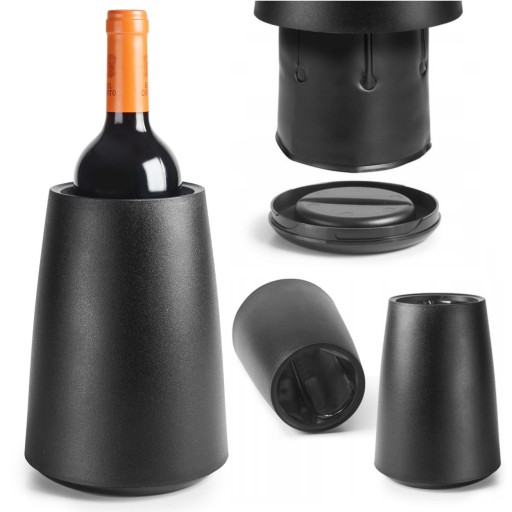 Pozwala na szybkie schłodzenie butelki wina, wystarczy 5 minut i odpowiednio niska temperatura utrzymuje się wiele godzin - bez lodu!