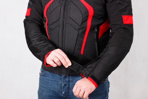 - anatomiczny krój kurtki idealnie dopasowuje się do ciała, co zapewnia dobre przyleganie protektorów, a co za tym idzie wysoki poziom ochrony