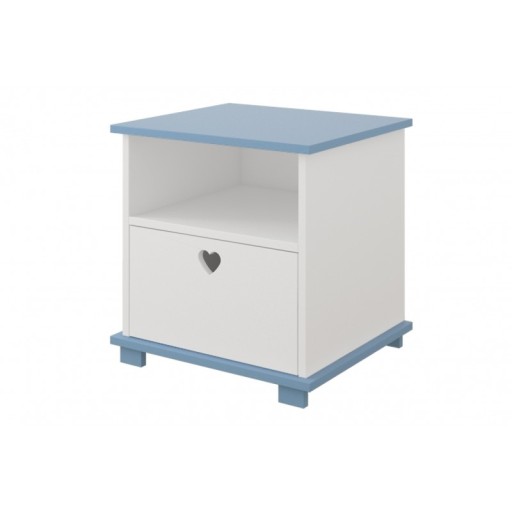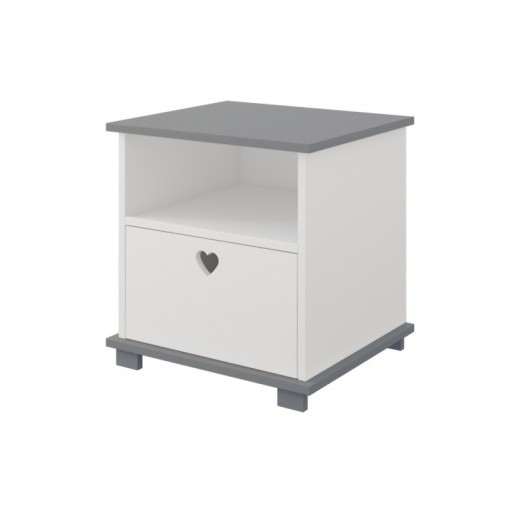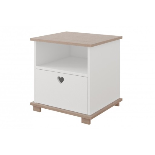 To wszystko pomieści się bez problemu na dziecięcej szafce nocnej SERCA. Oprócz powierzchni na blacie (idealnej na lampkę), posiada wygodną półeczkę, oraz dodatkowo szufladę z uchwytem - otworem w kształcie uroczego serduszka.