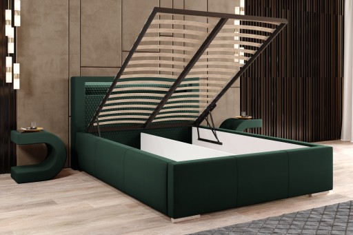 - Rama łóżka wykończona jest z wysokiej jakości weluru