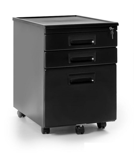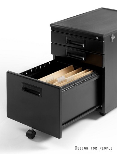 Kontener biurowy 324 metalowy pomalowany lakierem proszkowym w jednym z trzech dostępnych kolorów: białym, czarnym lub srebrnym. Wyposażony jest w 3 pojemne szuflady. Posiada zamek cylindryczny pozwalający na zamknięcie kontenera na klucz.