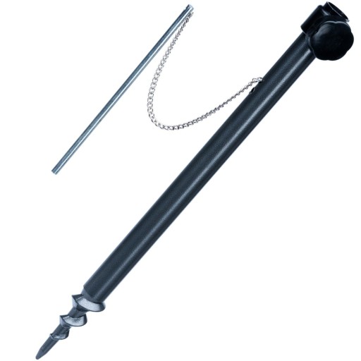 Zakończona gwintem, idealna do osadzenia parasola w twarde podłoże.