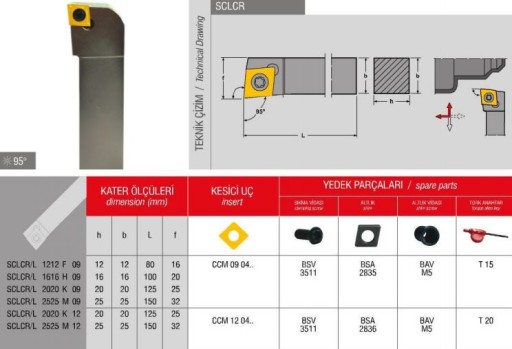 Nóż tokarski składak SCLCL 2525 M12 + 3 płytki CCMT 120308